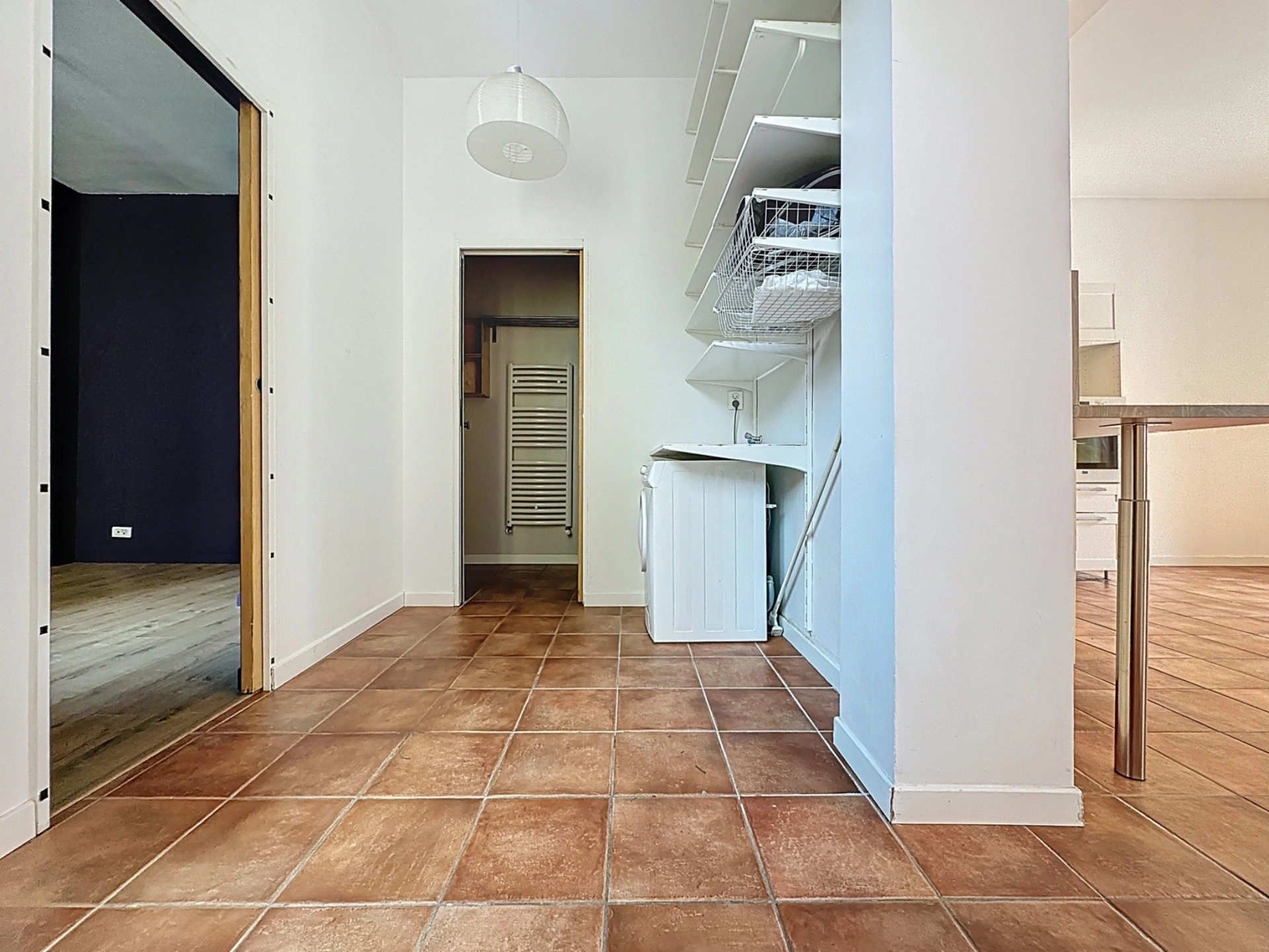 ?️ La partie nuit est parfaitement séparée, avec une chambre au calme, orientée Sud-Ouest, une salle d’eau rénovée, un WC indépendant avec fenêtre, une buanderie, et un dressing pratique pour le quotidien.